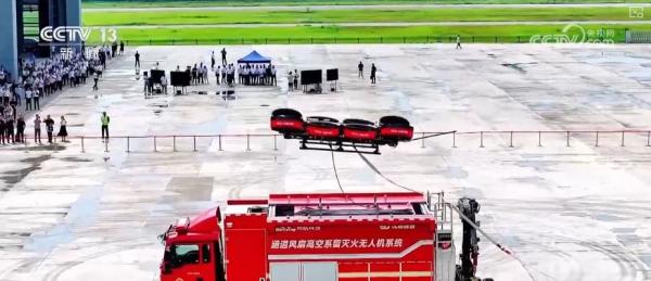 无人机企业手艺保障司理唐海丰引见,这是全球首款采用涵道电动电扇推进手艺设想的高空消防灭火无人机,具有更大的推力,载荷达到400公斤,爬升至百米高空仅需不到1分钟,很益处理了城市高空消防难题。