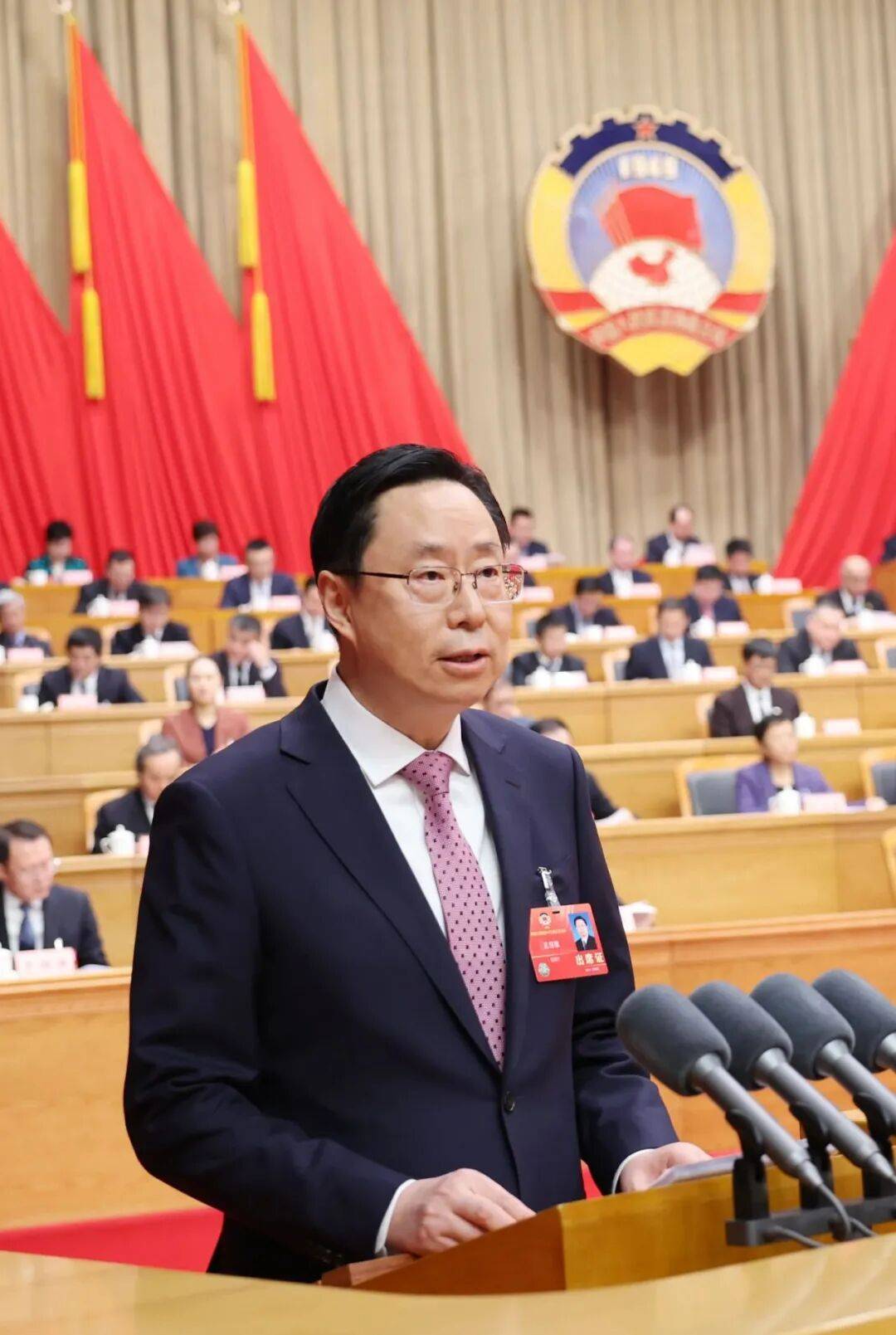 正在政协省第十三届委员会第三次会议上,省政协蓝绍敏代表政协省第十三届委员会常务委员会向大会演讲工做。